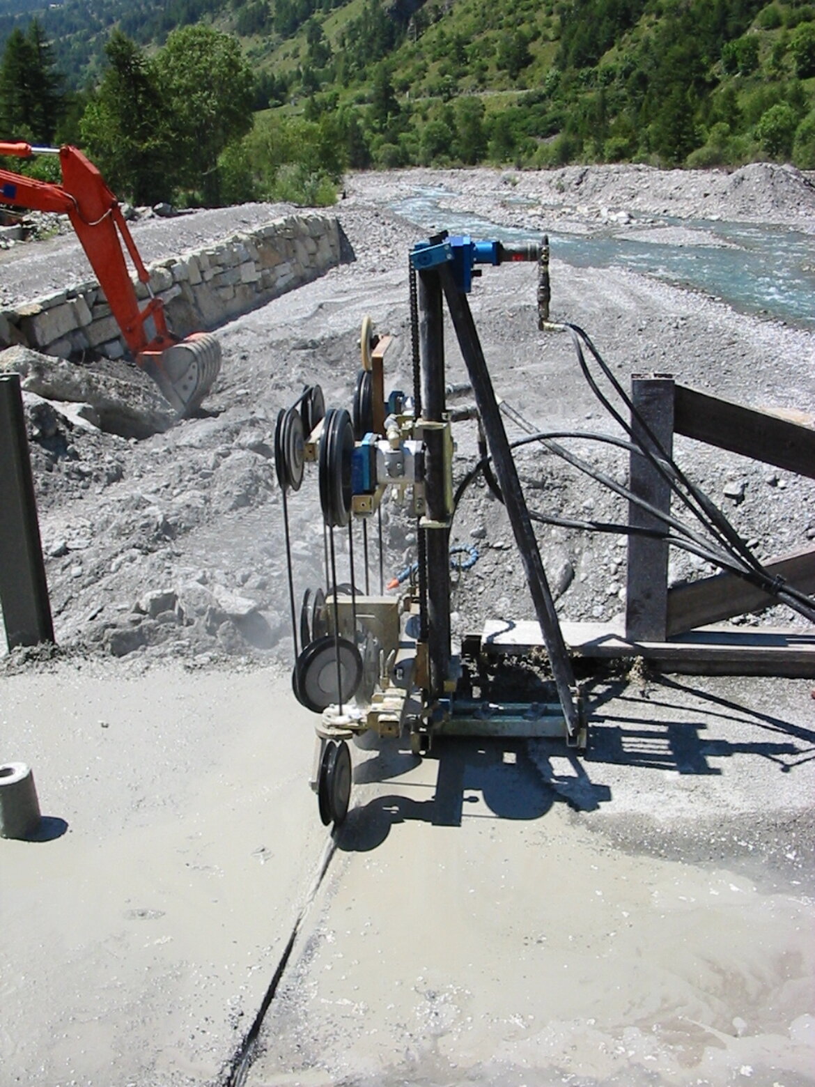 Tale sistema è perfettamente in grado di rimuovere ampie sezioni di cemento, anche fortemente armato, strutture in acciaio, pietra o mattoni. Può essere utilizzato per il taglio a secco (anche se raramente, a seconda delle necessità) e mediante l'utilizzo di acqua.